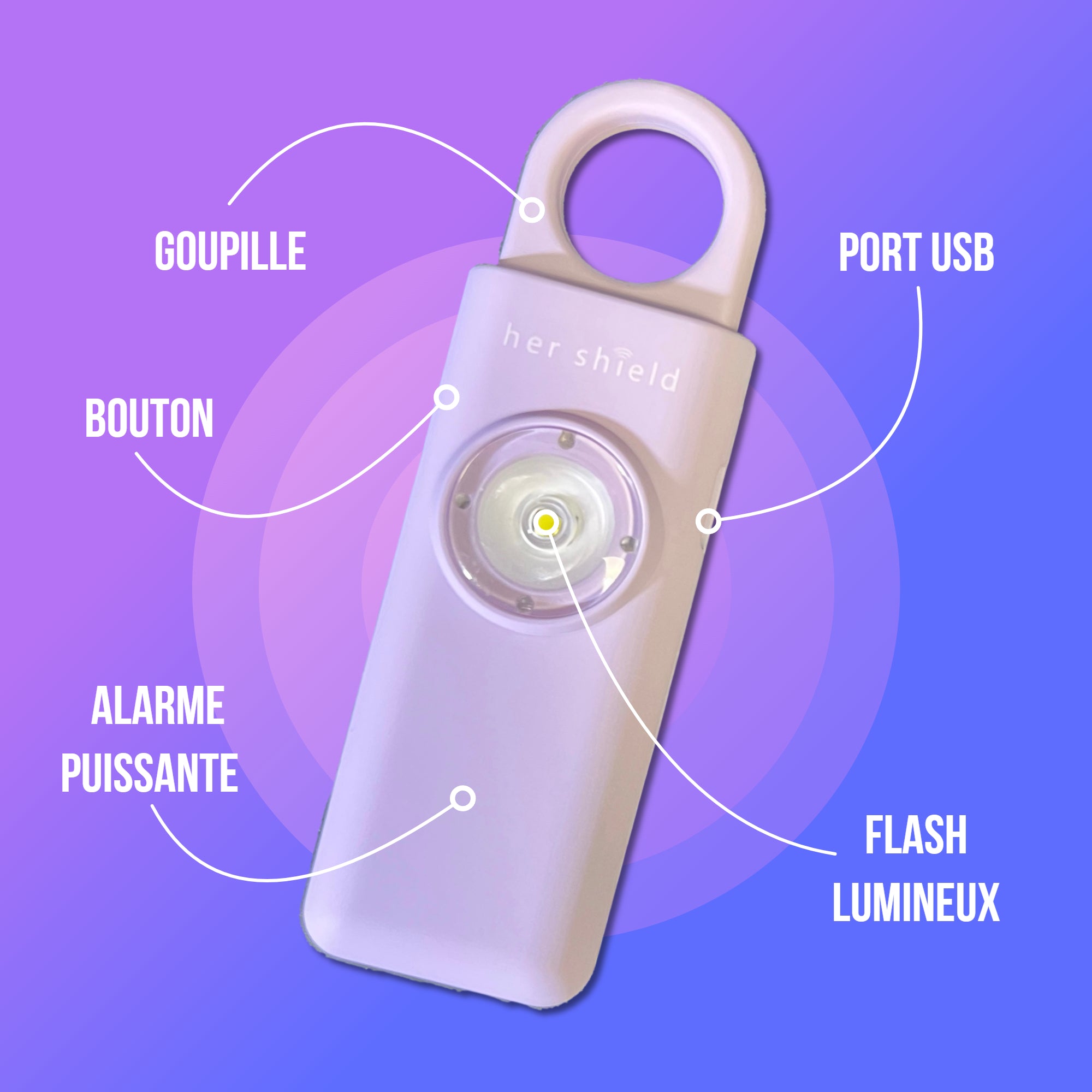 C'est une sirène personnelle, qui lorsque tu tires la goupille, une alarme de 130 db et un flash lumineux s'activent, envoyant un appel d'urgence avec ta localisation et un message à tes contacts d'urgence.